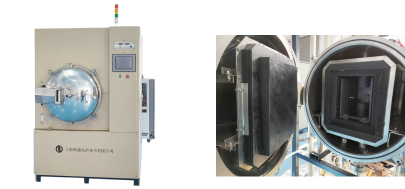 圖1上海皓越生產(chǎn)的熱壓燒結(jié)爐(左)外觀(右)爐內(nèi)構(gòu)造